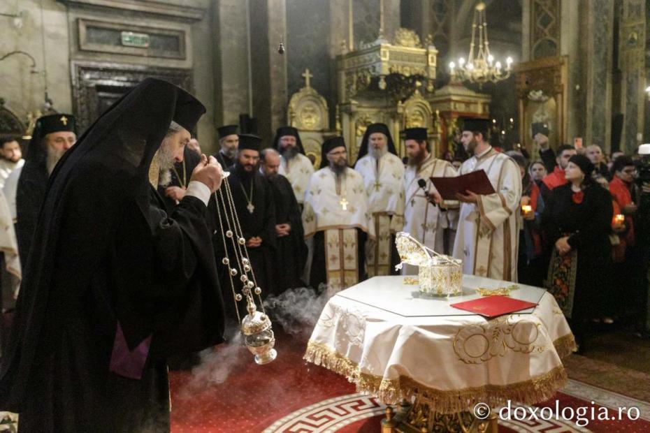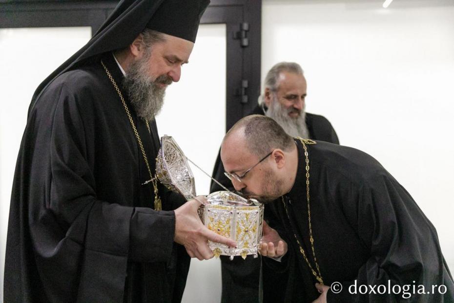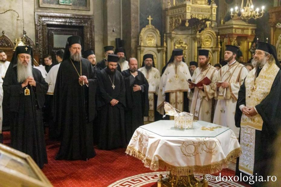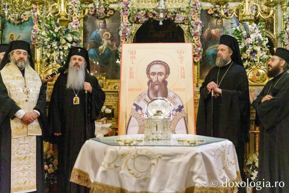 După o tradiție deja de decenii, de sărbătoarea Sfintei Parascheva sunt aduse spre bucuria credincioșilor sfinte moaște din țară sau din alte Bisierici Ortodoxe surori. Anul acesta, pelerinii au bucuria să se închine la moaștele celui între sfinți și de Dumnezeu purtător Grigorie, Arhiepiscopul Tesalonicului. Pentru prima dată, sfintele sale moaște venite în România, mulți dintre dumneavoastră mergând în cetatea împărătească a Salonicului, v-ați închinat în Biserica Mitropoltană la sfintele lui moaște, dar anul acesta avem bucuria de a-l avea aici, între noi, pentru câteva zile – un mare apărător al dreptei credințe, un mare ascet pentru mulți ani în Sfântul Munte Athos. Apărător al dreptei credințe în vremuri nu tocmai ușoare, luptând pentru marele Adevăr, și anume că omul, prin mila lui Dumnezeu, este binecuvântat de a se împărtăși cu lumina Sa necreată, omul are posibilitatea, prin mila lui Dumnezeu, să devină Dumnezeu după har, acesta fiind scopul fiecărui creștin, al celui care viețuiește în sfânta mănăstire sau a creștinului din lume, și anume, dobândirea Duhului Sfânt. Sfântul Grigorie Palama a influențat foarte mult, prin ucenicii săi, viața monahală din teritoriile locuite de români. Mai întâi în zona de sud, în zona Olteniei, prin Sfântul Nicodim de la Tismana, apoi în Ardeal, și bineînțeles, aici în Moldova. Sfintele sale moaște au fost aduse de Înaltpreasfințitul Filoteos, Mitropolitul Tesalonicului, împreună cu o distinsă delegație. Îi mulțumim pentru osteneala pe care și-a luat-o pentru a poposi câteva clipe printre noi. Se va adăuga rugăciunii noastre, a pelerinilor, va rămâne pentru câteva zile, aici, în Iași, iar cu ajutorul lui Dumnezeu, împreună și cu alți ierarhi din Biserica noastră și din alte Biserici Ortodoxe surori, vom săvârși Sfânta Liturghie în ziua de prăznuire a Preasfintei Cuvioase Maicii noastre Parascheva, cea mult folositoare.